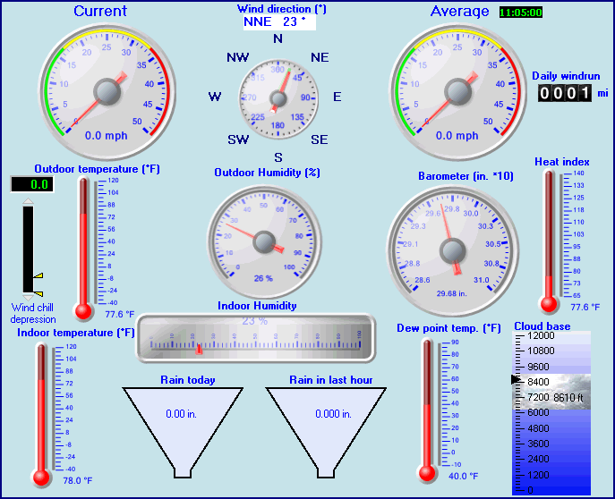| Humidity | 26 %, Humidex 76.0°F | Barometer corrected to msl | 29.680 in. (1005.1 hPa) |