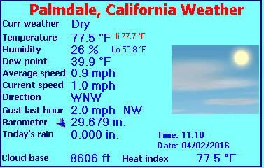 | Palmdale Weather Data | |||